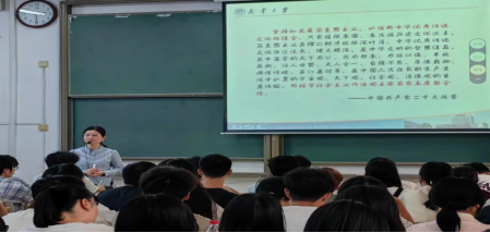 闫寒英老师以“对立统一规律”为主题,以党的二十大报告的“两个结合”思想导入课程,围绕“对立统一规律的内涵”“对立统一规律的文学运用”“古典诗词的对仗手法”三个方面的内容,结合中华古典诗词的对仗手法和审美境界,给同学们及与会老师们上了一堂充满诗意的思政课。